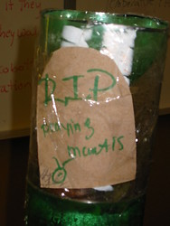 We are called the MANTIS group and we are working on the observation and documentation of an eco-bottle. Our ecobottle is comprised of four 2-liter bottles. We spent about 4 months preparing the bottle itself and making our observations. In November we took apart the ecobottles and began work on this website. Our ecobottle had 3 parts to it: Terrestrial, Aquatic, and Decomposition. Each part had a little something in it, but the terrestrial was the part with our praying mantis (a common green mantis) which lived for about two and a half weeks. We saw many changes throughout the weeks but nothing too dramatic.
